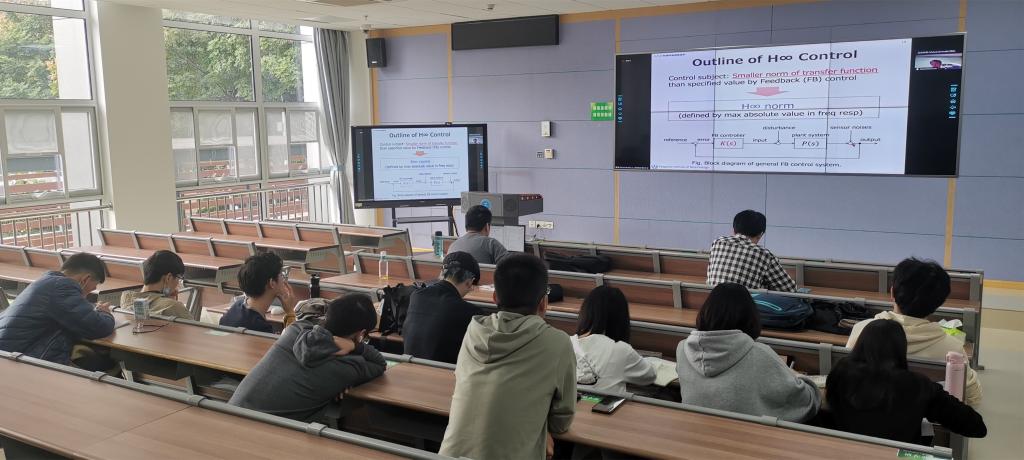 在新型冠状病毒感染的肺炎疫情防控期间,英国上市365官网坚持以研究生为中心,以办好研究生教育教学为目标,扎实推进研究生国际化课程建设,组织开设了由日本名古屋工业大学岩崎誠教授为主讲的国际化课程《高精度运动控制》。根据学校疫情防控期间研究生课程教学工作的部署和安排,学院创新授课模式,首次实现教授线上授课、学生线下教室集中听课的新模式。经过中日三位教授的精心组织,克服时差、网络质量等问题,实现授课过程清晰,师生交流顺畅,充分保证了国际化课程的有效开展。